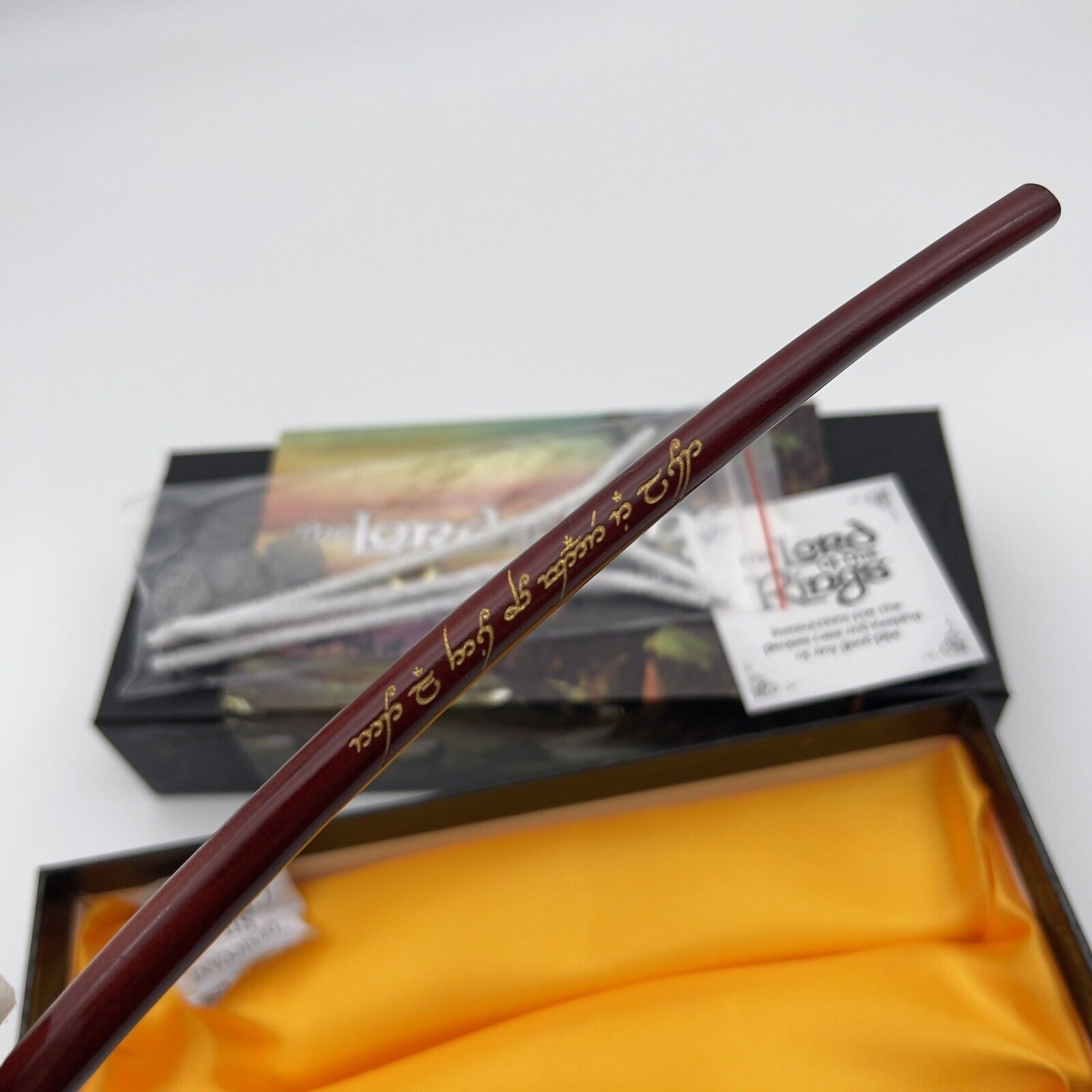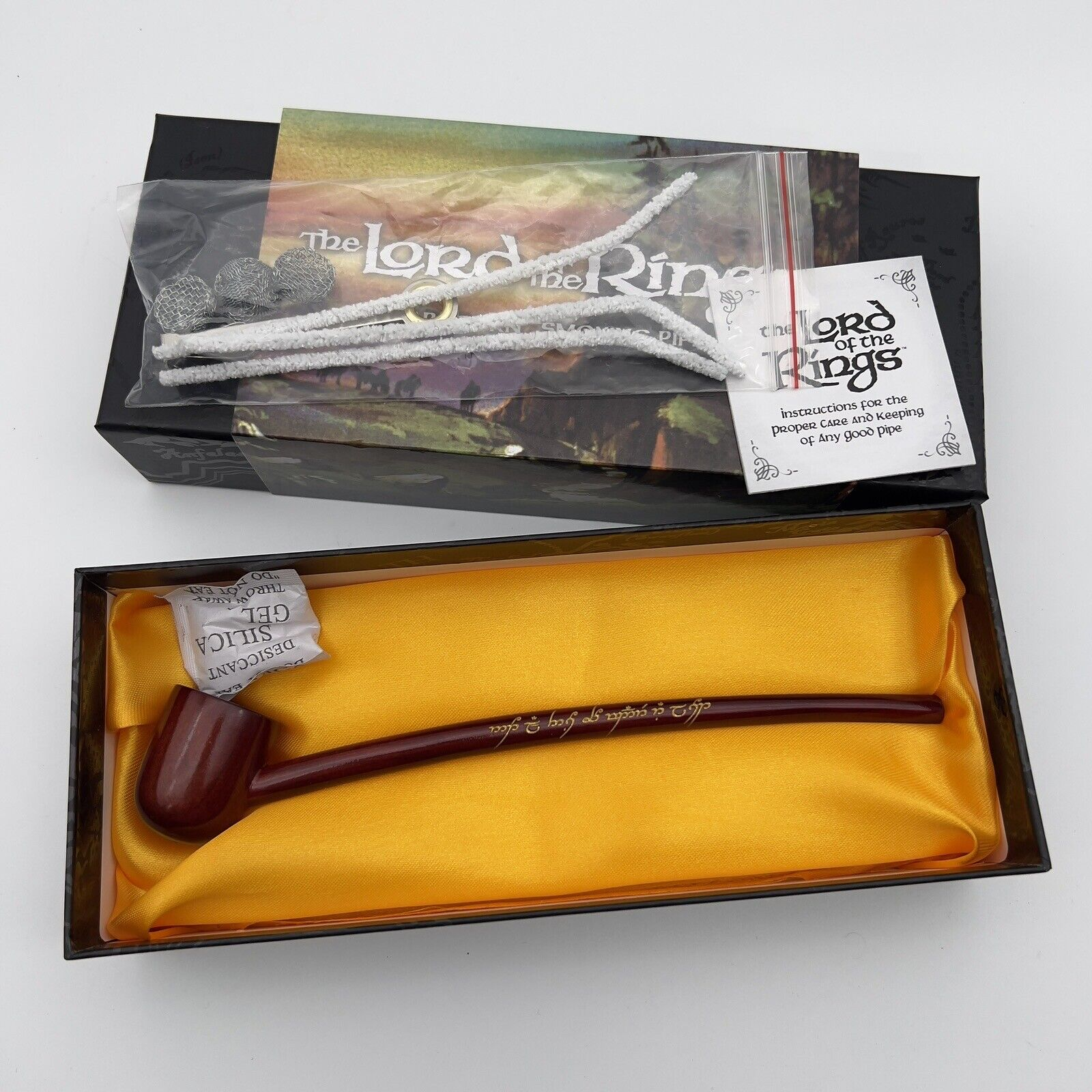 Features the iconic quote from The Fellowship of the Ring, "Not all those who wander are lost," embellished in gold Elvish script on the pipe stem.